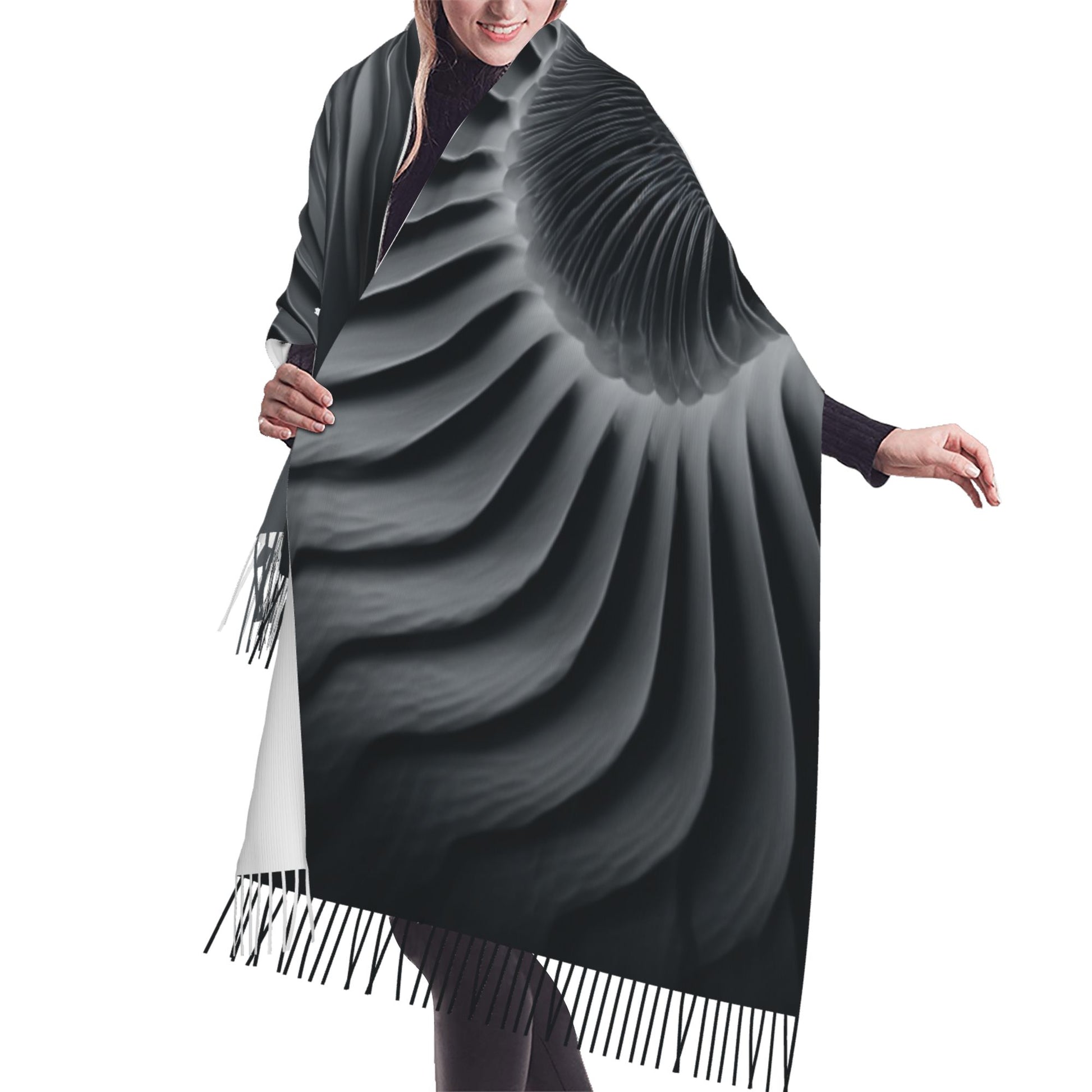 Turbine Engine Art Scarf – Faux Cashmere Oversized Winter Wrap with Industrial Minimalist Design (77" x 27")