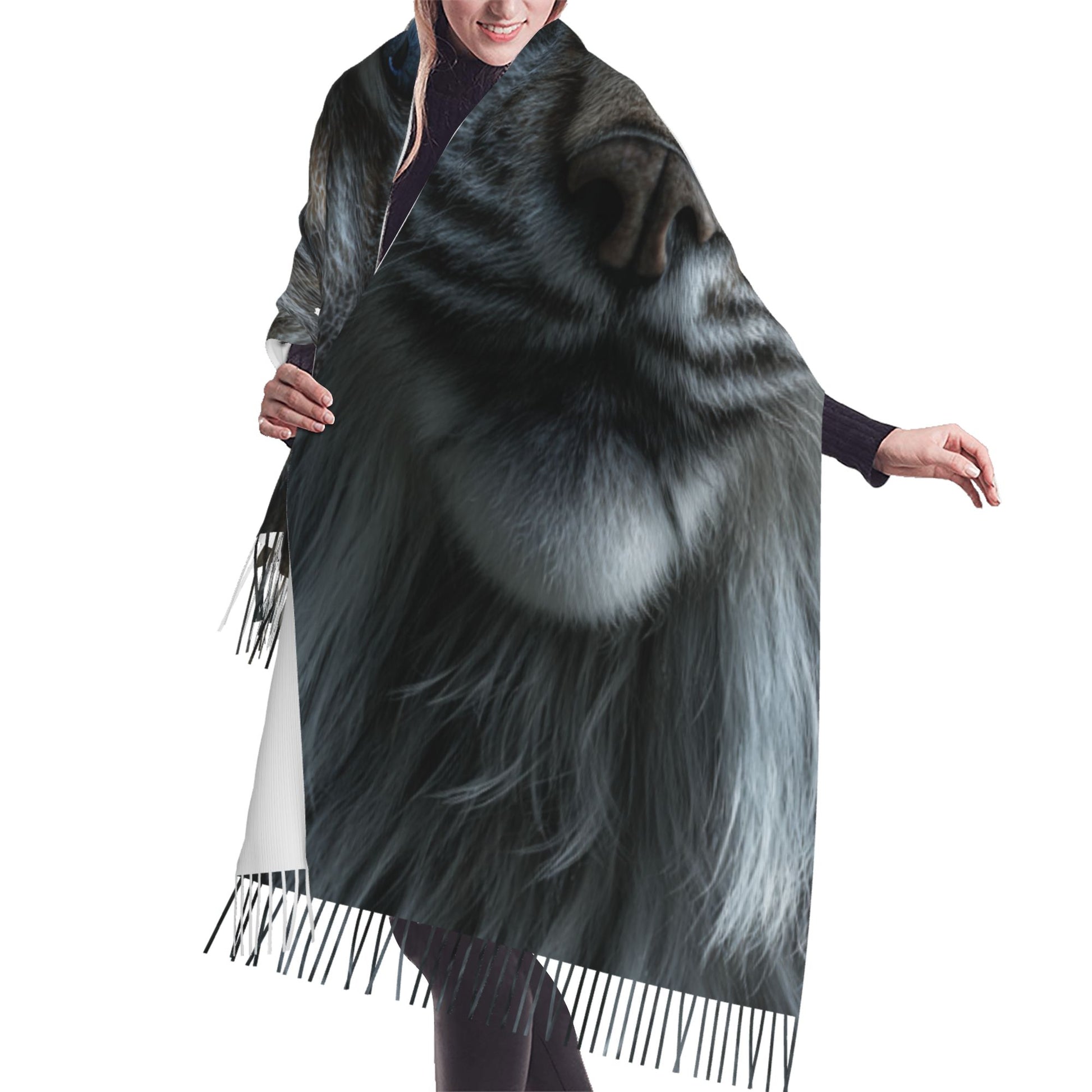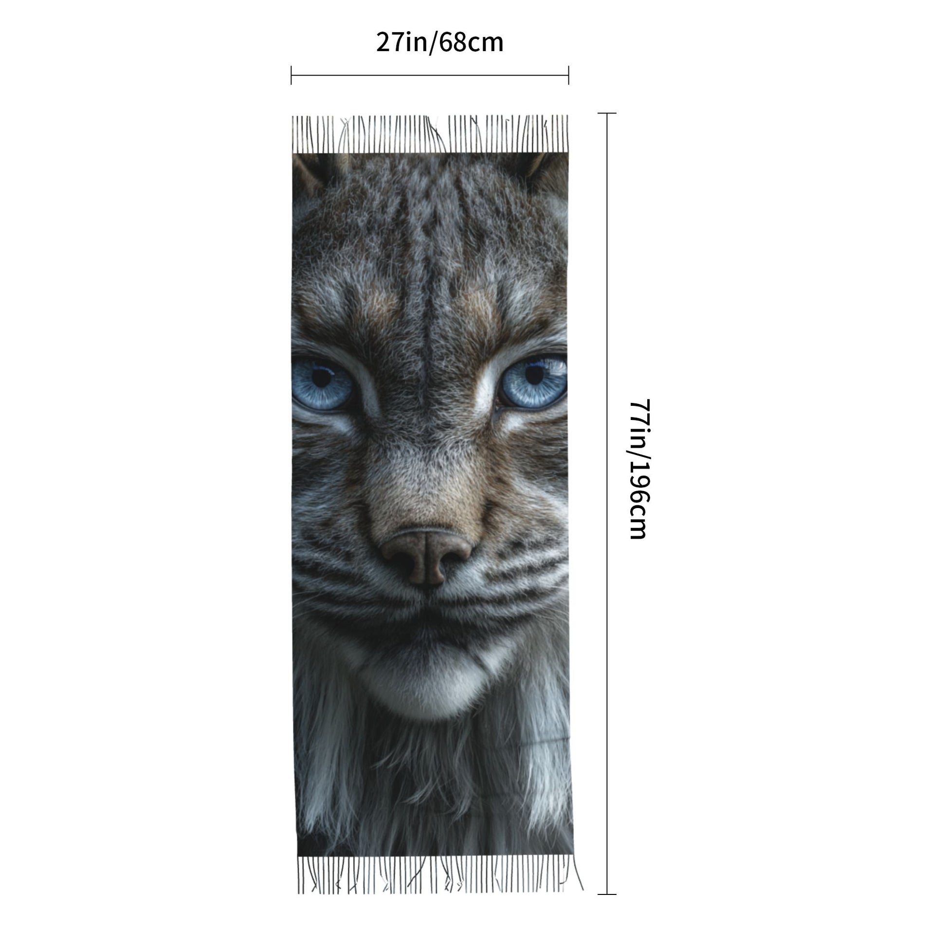 Blue-Eyed Lynx Faux Cashmere Scarf – Wild Animal Portrait Long Tassel Wrap (77" x 27")