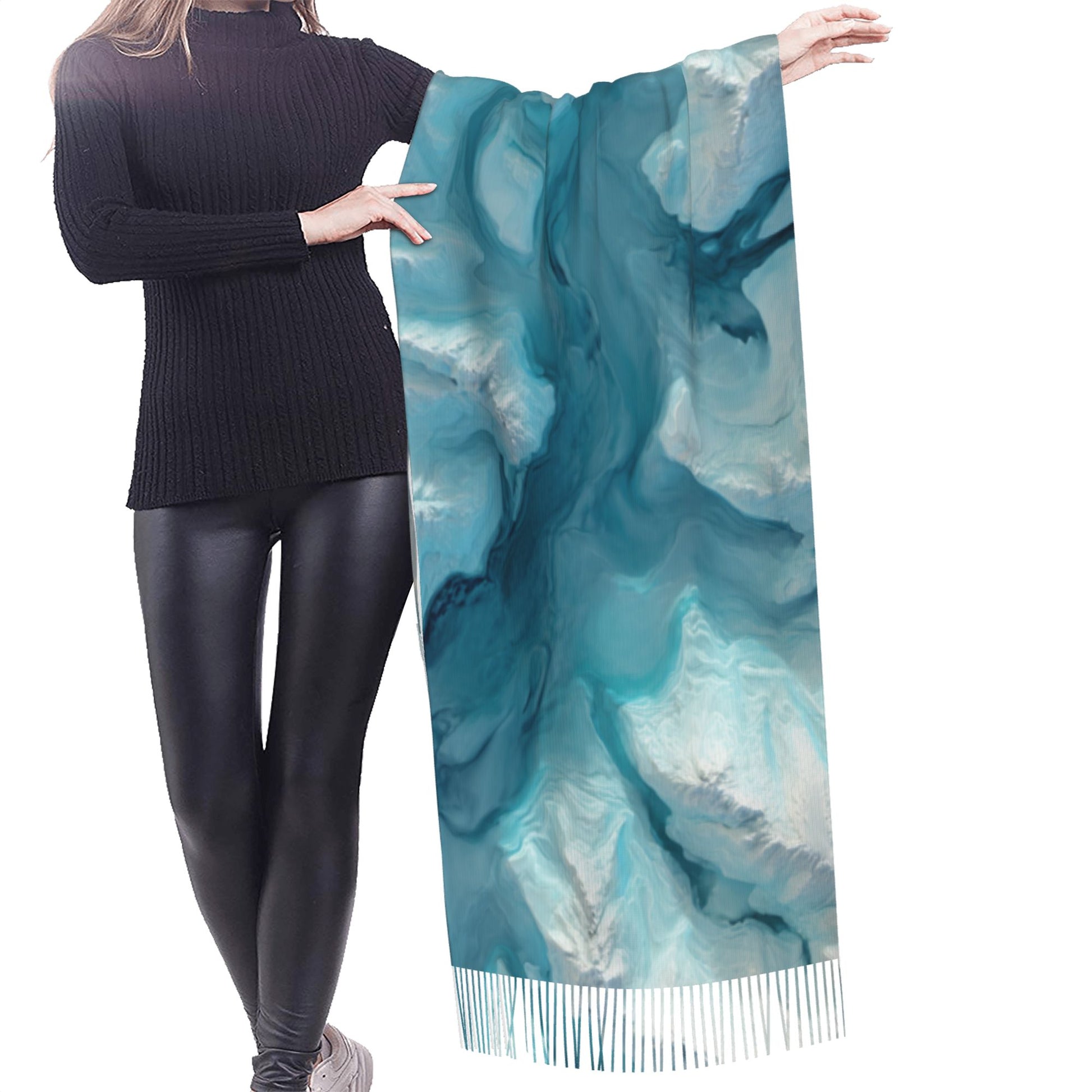 Glacier Texture Faux Cashmere Scarf with Tassels – Aerial Landscape Winter Wrap (77" x 27")