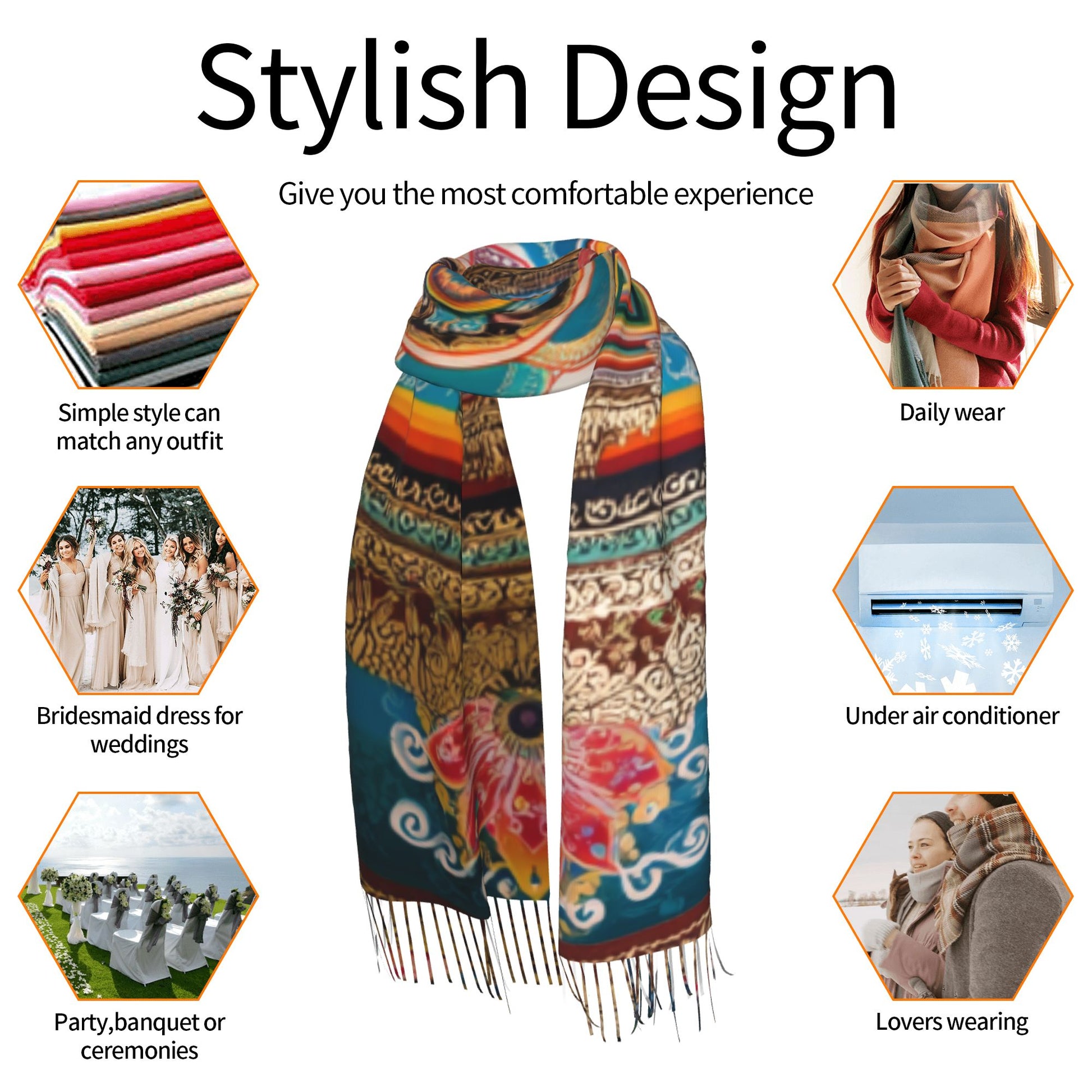 Made from high-quality faux cashmere (polyester), the fabric offers exceptional softness, warmth, and comfort without the bulk. It’s skin-friendly and won’t irritate sensitive skin, making it perfect for chilly autumn or winter days. Measuring 77 inches by 27 inches (196cm x 68cm), this oversized scarf wraps effortlessly as a neck scarf, shoulder shawl, or decorative travel throw. The flowing fringe edges further elevate its boho charm.
