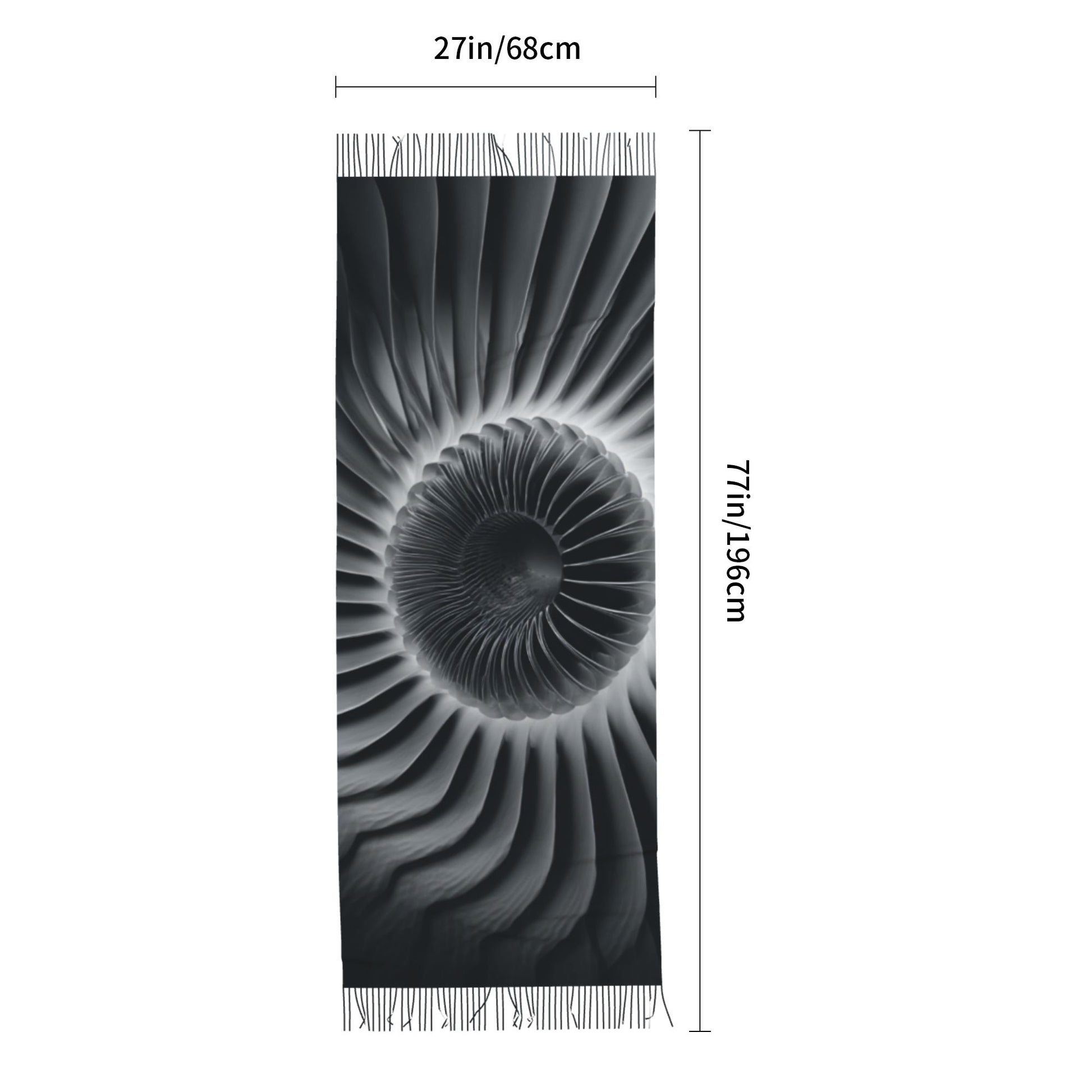 Turbine Engine Art Scarf – Faux Cashmere Oversized Winter Wrap with Industrial Minimalist Design (77" x 27")