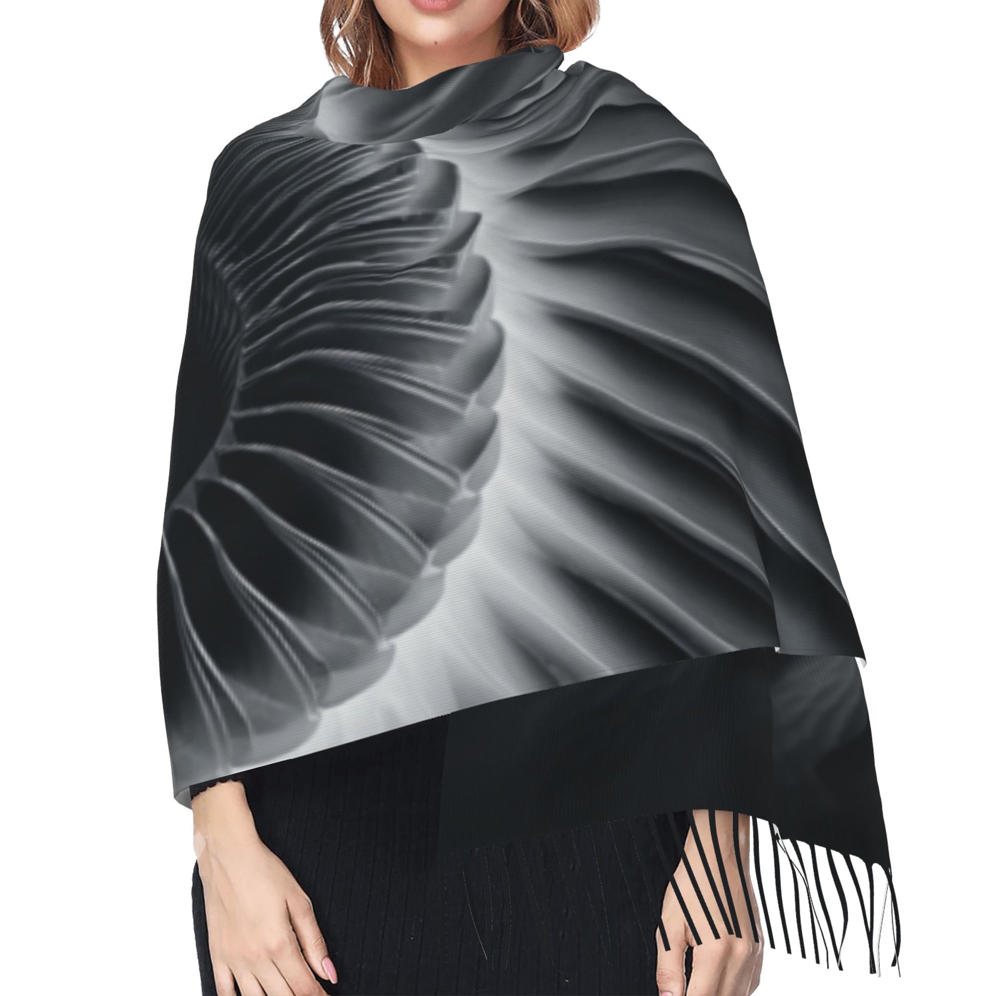 Bring bold industrial elegance to your winter wardrobe with this faux cashmere scarf featuring a turbine engine-inspired design. Made of premium polyester with a cashmere-like touch, it provides a soft, cozy texture while remaining lightweight and breathable. The monochrome swirl pattern draws inspiration from mechanical forms, creating a futuristic and minimalist aesthetic perfect for urban wearers and design enthusiasts.